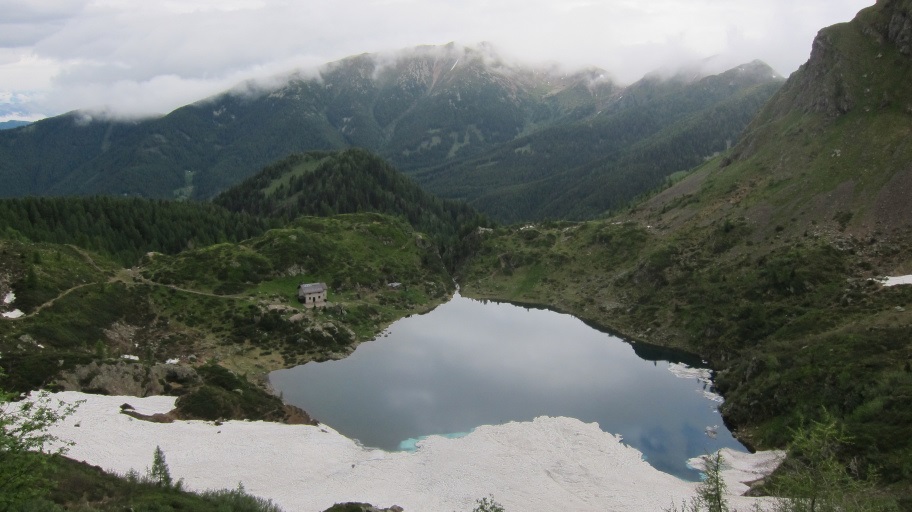 Nach ca. 2,5 Stunden erreichten wir den See Lago Erdemolo, nachdem wir mehrmals unsere Regensachen aus und wieder angezogen hatten.