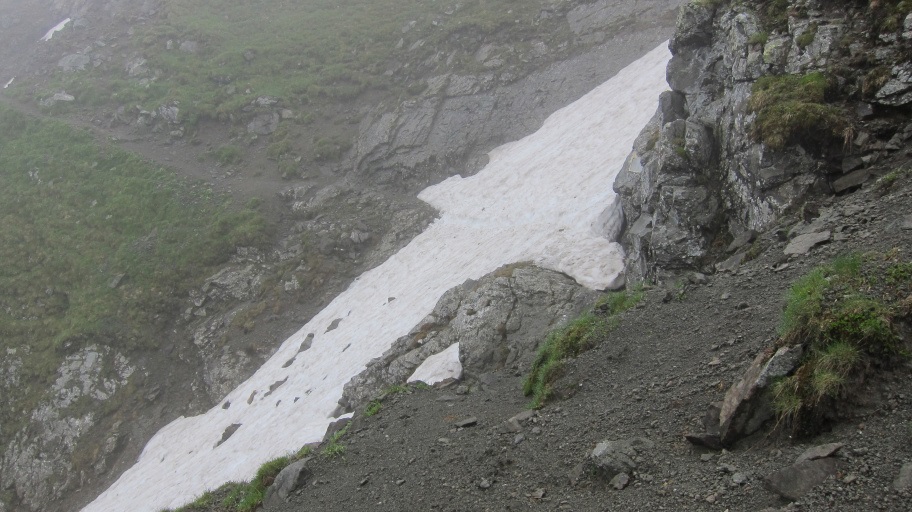 Allerdings waren insgesamt 3 solcher Schneefelder zu überqueren. Diese waren relativ steil und wir mussten erst eine Spur treten.