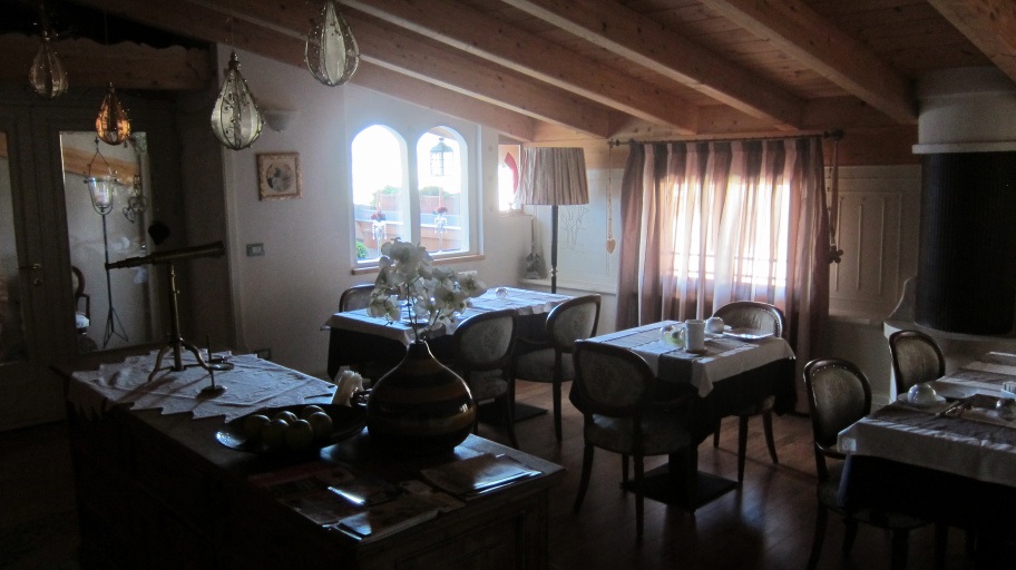 Aus diesem Grund nahmen wir das erste ausgeschilderte Quartier (Bed & Breakfast Villa Loggia dell' Imperatore). Dieses Quartier ist sehr zu empfehlen. Auf dem Bild ist der Frühstücksraum zu sehen. Als Service gab es einen 10% Rabattgutschein für eine Pizzeria im Ort, den wir auch nutzten.
