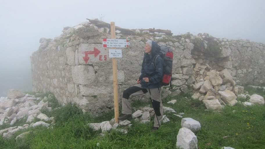 Gegen Mittag kam dann doch Nebel auf, so dass wir am Margo Costa (1845 m), nachdem wir vom Monta Maggio erst 600 m abgestiegen und dann wieder 600 m aufgestiegen waren, so gegen halb 2 ankamen. Hier legten wir eine Mittagspause ein.