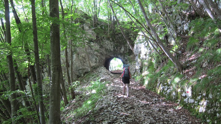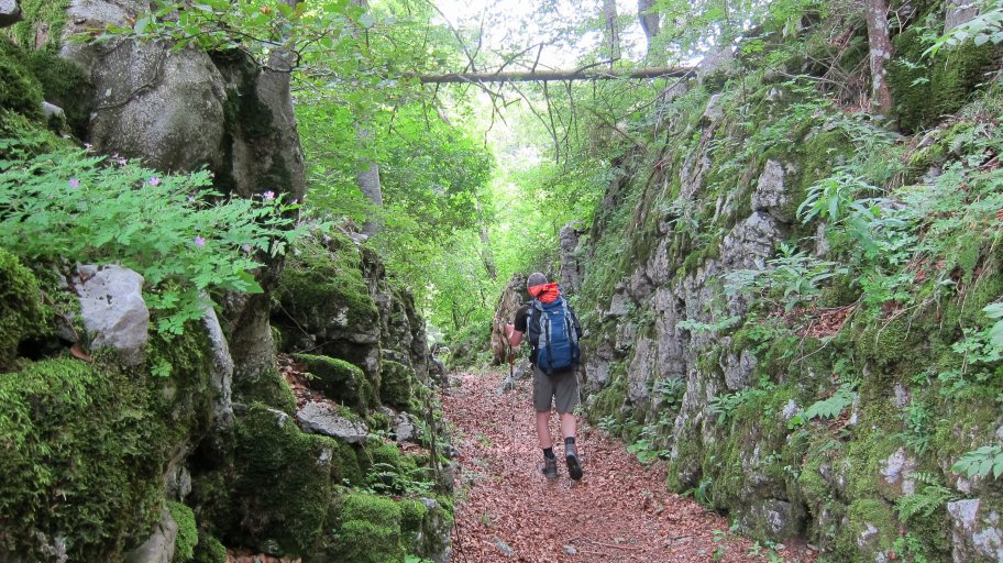 Auf der Gegenseite des Tales ging es stetig bergauf durch schattigen Buchenwald auf alten Handelswegen.