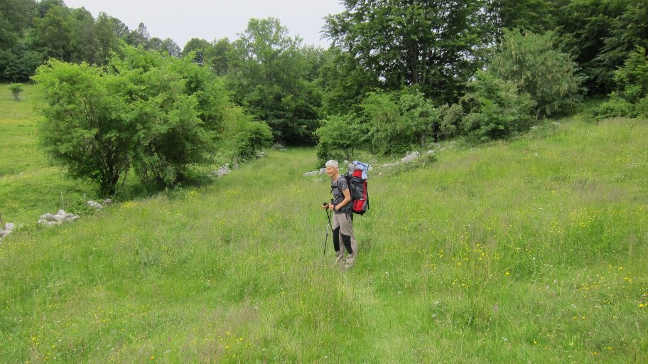 Oft verlief der Weg über Viehweiden, wobei die Markierungen durch das hohe Gras oft kaum zu erkennen waren.