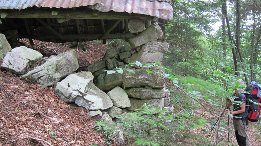 Diesen Unterstand sollte man besser nicht nutzen! Später ging der Weg durch ein fast zugewachsenes Tal.