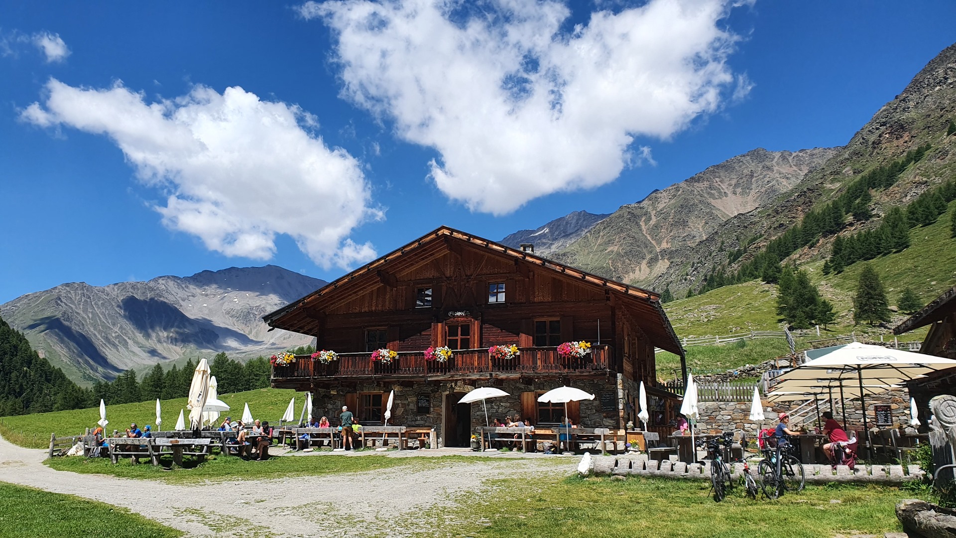 Am Eishof (2071 m) machten wir Mittag und genossen noch ein Bier bevor es dann weiter zum Eisjöchl (2895 m) ging,