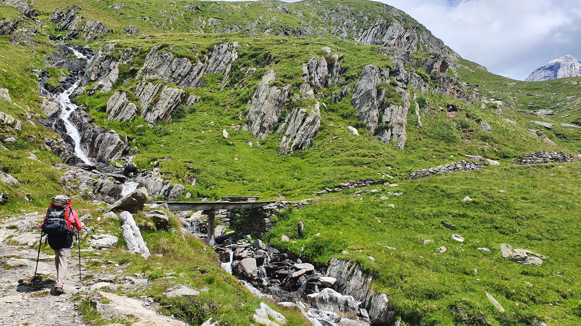 Diesen Teil des Weges fanden wir dann nicht so toll. Hier wurde unserer Meinung nach zu viel des Guten getan. Diese "Straße" passt nichts ins Gebirge. Wahrscheinlich ein Tribut an die Mountain Biker, die dann mit ihren E-Bikes bis zur Stettiner Hütte fahren können.