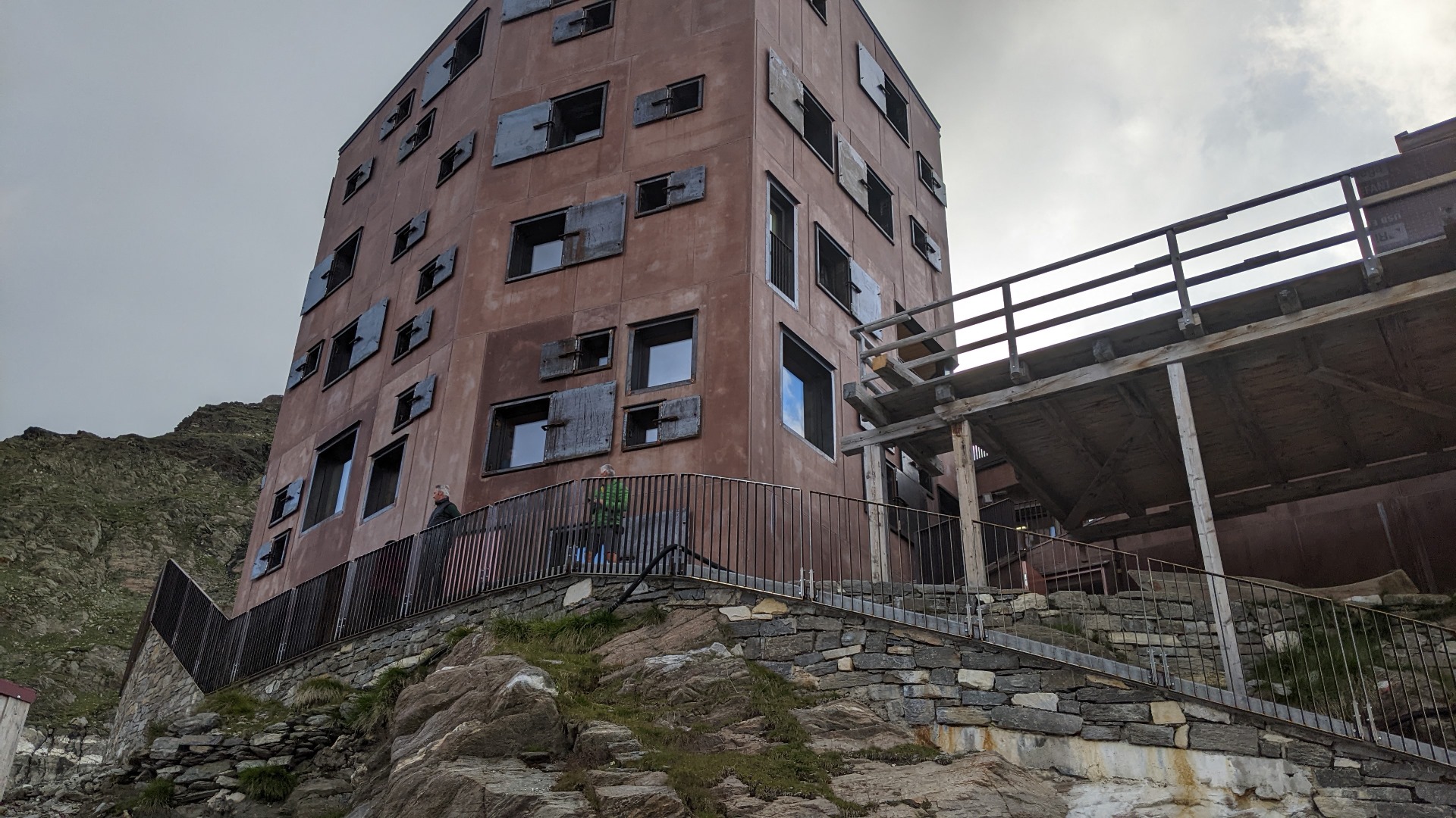 Diese neue Hütte ist Geschmackssache. Uns hat sie nicht gefallen. Alles aus Beton und die Fenster werden im Winter dann komplett mit Eisenplatten geschützt. Im Inneren hatte jedes 4 Bettzimmer eine Brandschutztür. Wenn man nicht aufpasste knallten diese dann nachts selber laut zu. Unser Fenster im Zimmer ließ sich nur einen Spalt öffnen, da die Doppelstockbetten dieses blockierten. So geschwitzt haben wir nie wieder auf dieser Tour.