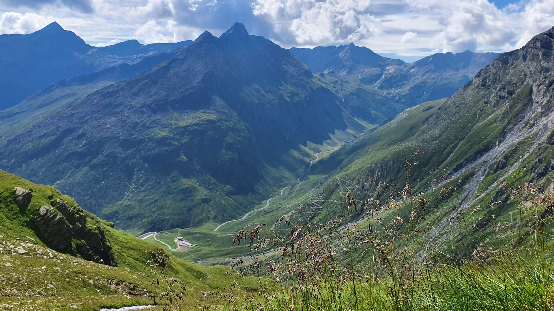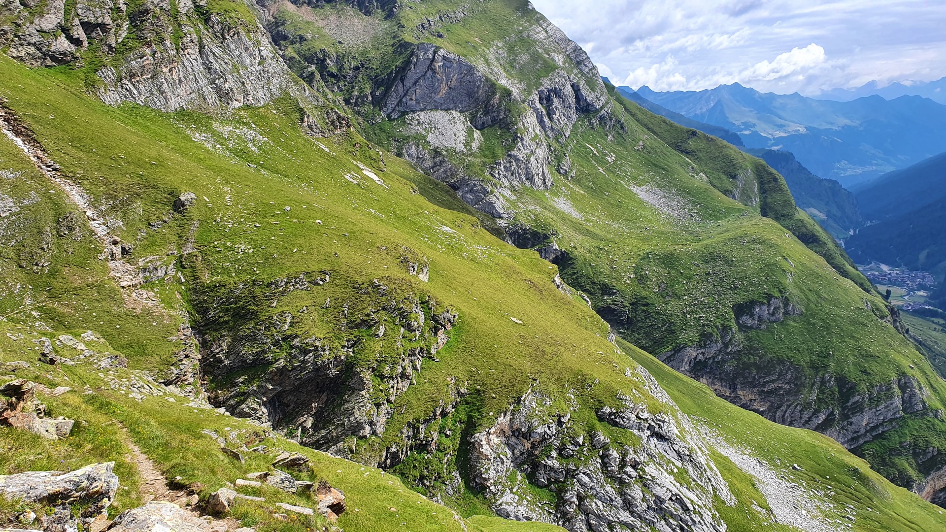 Tief unten ist der Meraner Höhenweg zu sehen, der über die Serpentinen direkt nach Pfelders geht.