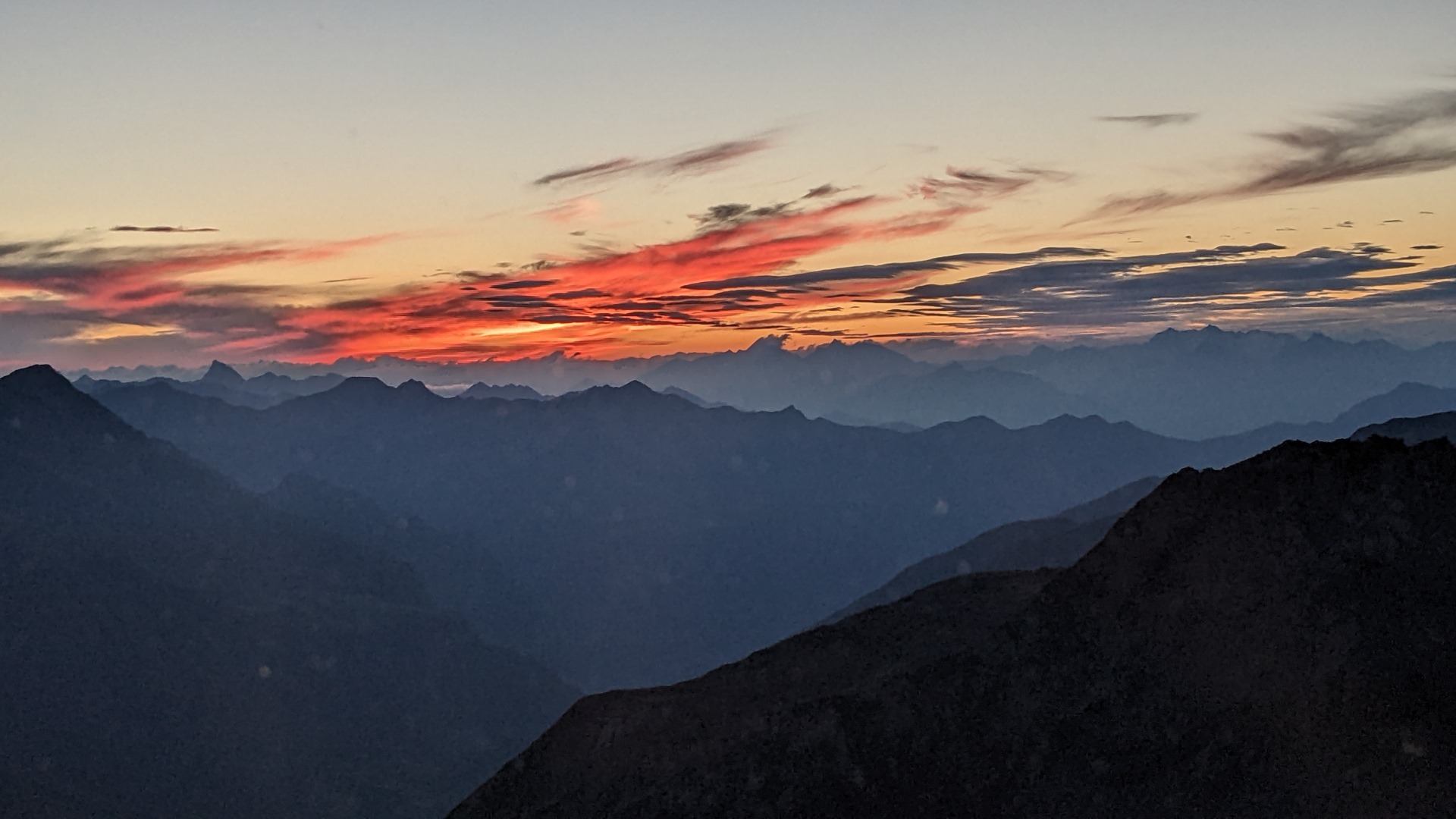 Die Materialseilbahn der Zwickauer Hütte ist kaputt, so dass sie mit dem Hubschrauber versorgt werden muss. Die Hütte ist sehr gemütlich und neben uns waren nur noch 4 andere Wanderer auf der Hütte. Der Wirt hat selber gekocht. Das Abendessen war phantastisch.