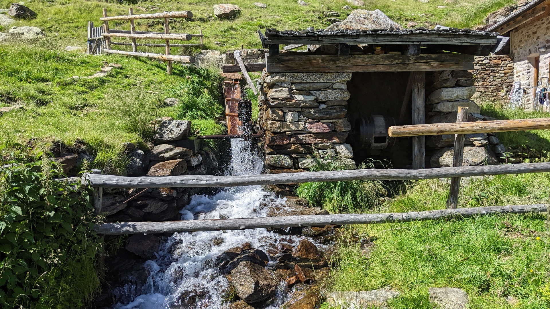 Angekommen am Oberkaser sieht man als erstes diese Wassermühle. Der Wirt hat uns dann aufgeklärt, dass in dem Fass Butter gemacht wird. Die Alm hat 8 Kühe und macht ihre Butter und Buttermilch selber. Diese Buttermilch war phantastisch.