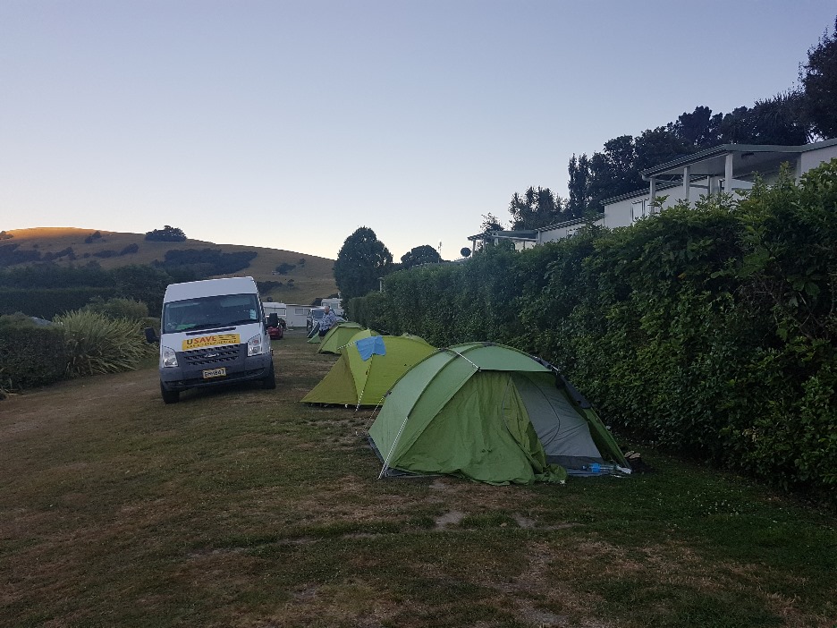 Im Akaroa Holiday Park bauten wir das erste Mal auf dieser Reise unsere Zelte auf.