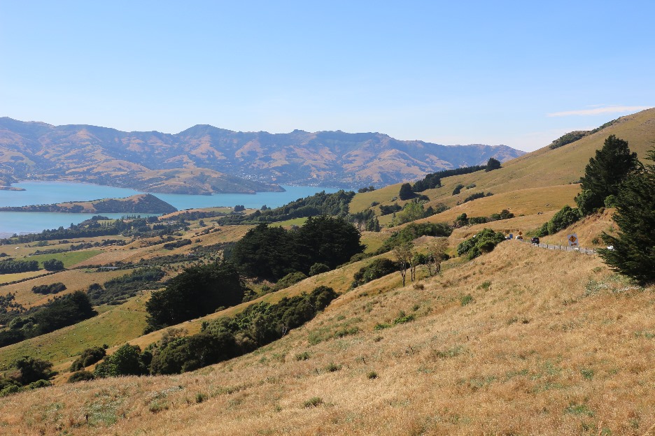 Am Abend ging die Fahrt entlang eines Kraterrands in die ehemals französische Siedlung Akaroa.