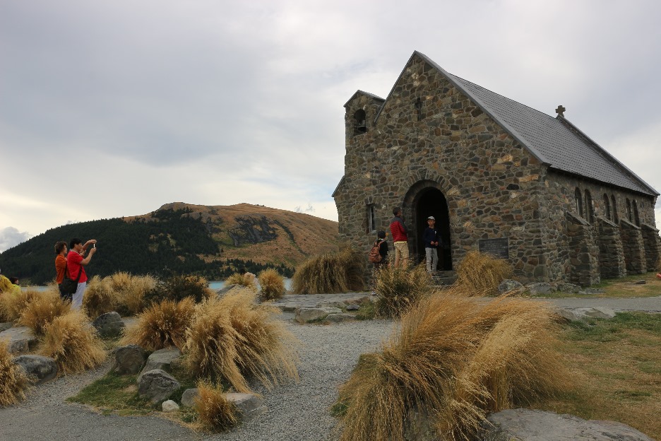 Auf dem Weg Richtung Mt. Cook war ein Stopp an der Steinkirche "Good Shepherd" am See Lake Tekapo Pflicht.