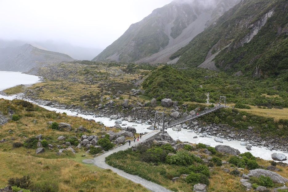 Da sich der Mt. Cook in den Wolken versteckte, entschieden wir uns zum Hooker Lake zu wandern.