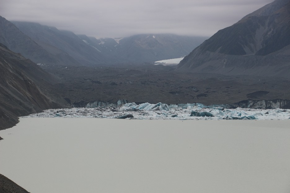 Am Nachmittag machten wir noch einen Ausflug zum Tasman Lake. Hier ist der Gletscher noch besser erkennbar. Aber auch er hat schon bessere Zeiten gesehen.
