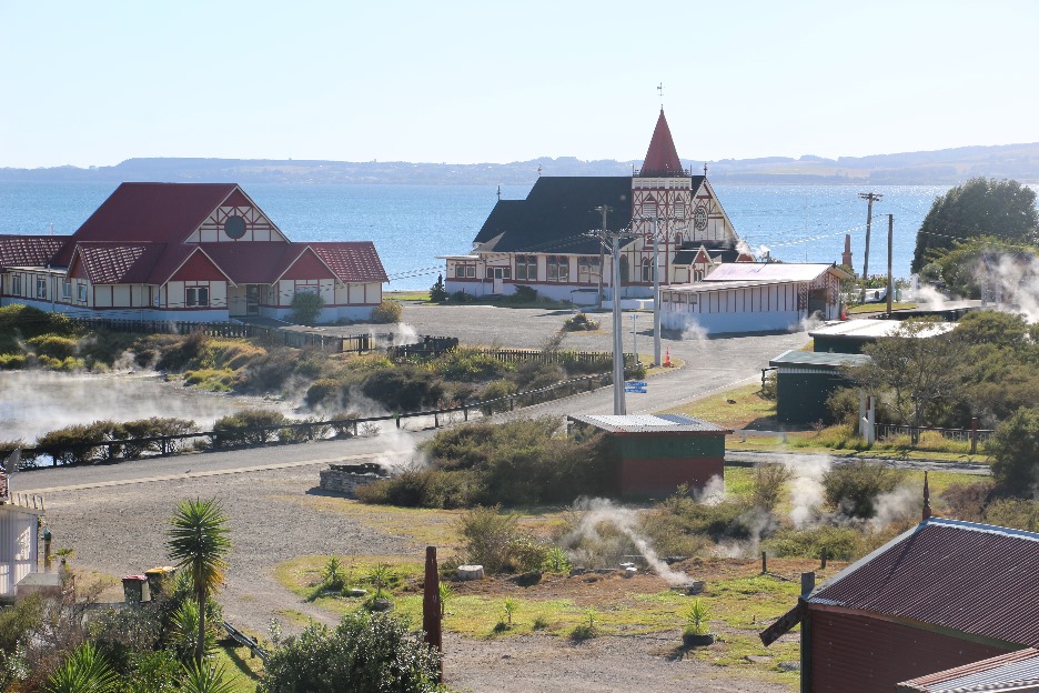 Unser erster Stopp war das Dorf Ohinemutu Maori Village, wo die Maori, die hier leben, noch heute die vulkanischen Vorzüge, wie kochendes Wasser im Vorgarten, nutzen.