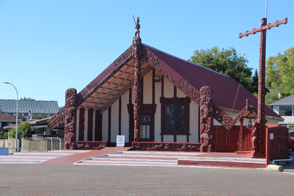 Das Versammlungshaus der Maori steht nicht weit von der Kirche entfernt. Hier mischen sich die Traditionen.