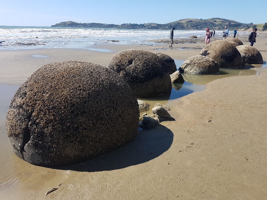 Diese Steinkugeln sind ca. 4 Millionen Jahre alt und liegen in der Nähte von Moeraki und heißen deshalb Moeraki Bolders.