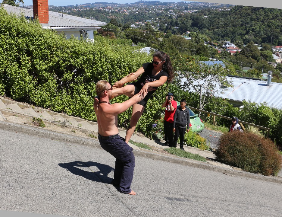 Die Baldwin Street ist die steilste Straße der Welt (35% Gefälle). Sie gehört zu Dunedin. Selbst beim Fotografieren fällt es schwer die Steigung richtig einzuschätzen.