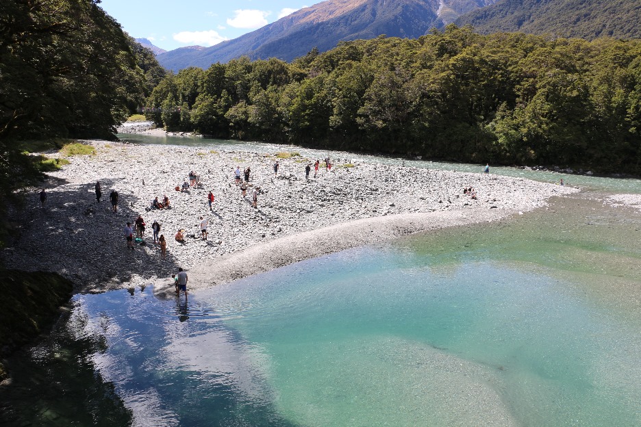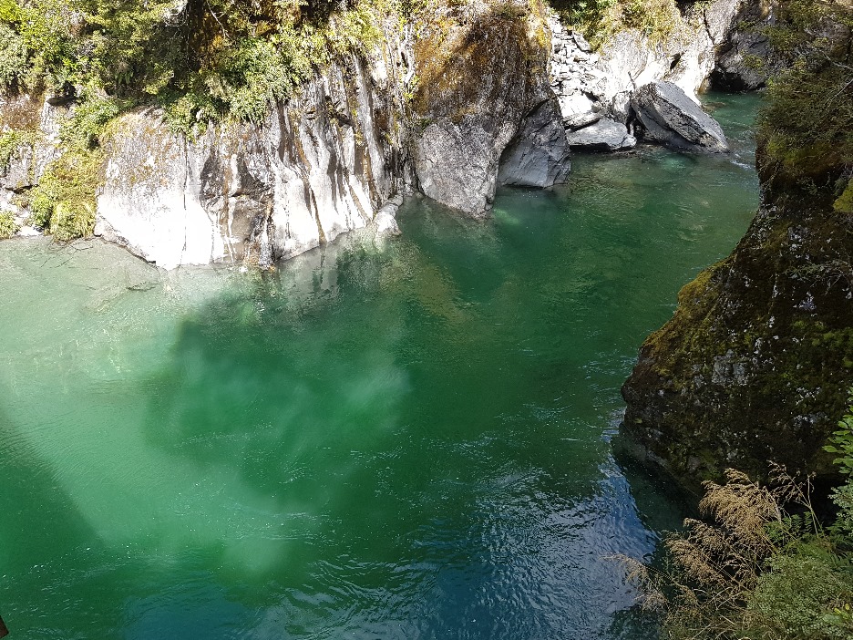 An den Blue Pools angekommen konnten wir nur "grünes" Wasser sehen. Dies liegt wahrscheinlich an den Algen im Spätsommer.