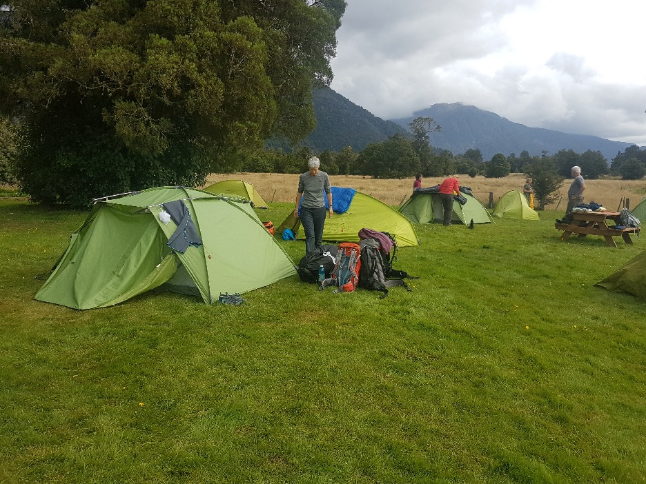 Auf dem Campingplatz in Fox Glacier haben wir wieder einmal unsere grüne Zeltstadt aufgebaut.