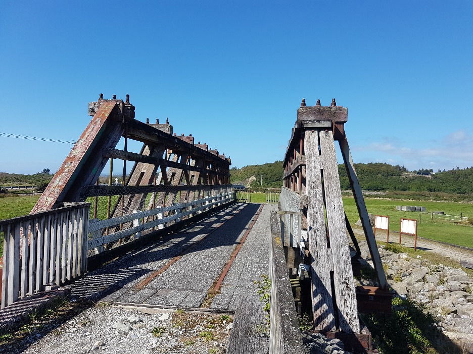 Bis 2009 teilten sich Eisenbahn und Autos diese ehemals 60 m lange Brücke über den Arahura River. Seitdem gibt es 2 Brücken nebeneinander und die Alte steht als Erinnerung in der Nähe des Flusses.