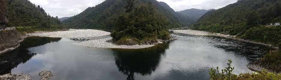 Am Buller River. Eine fast 180° Kurve des Flusses.