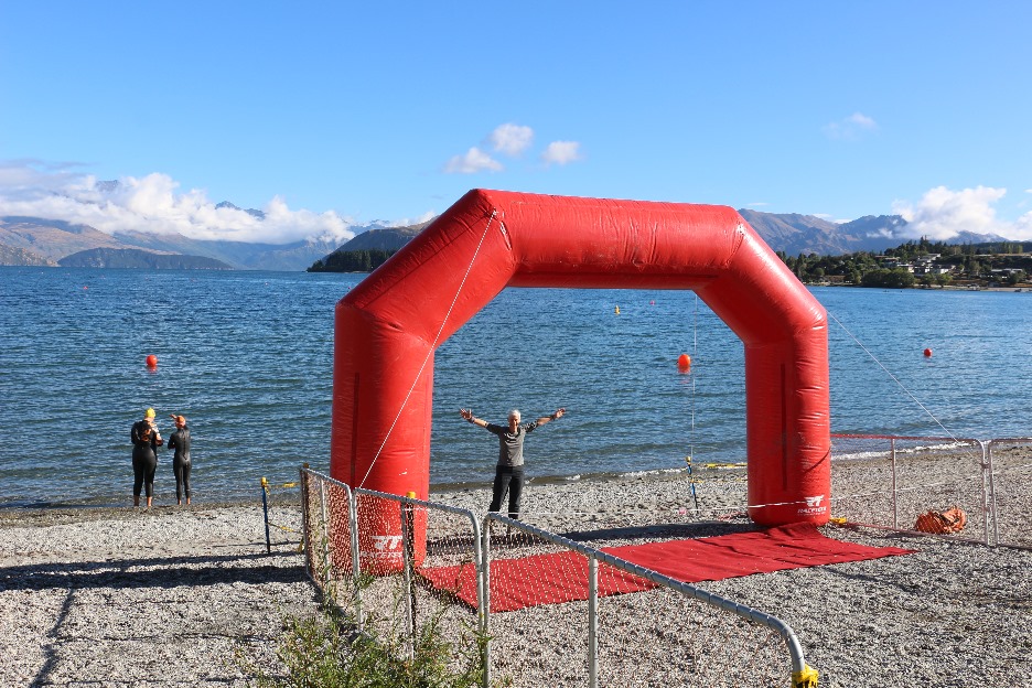 Am nächsten Tag ging es zuerst einmal ans Seeufer in Wanaka , wo gerade die Vorbeitungen für einen Thriatlon-Wettkampf stattfanden.