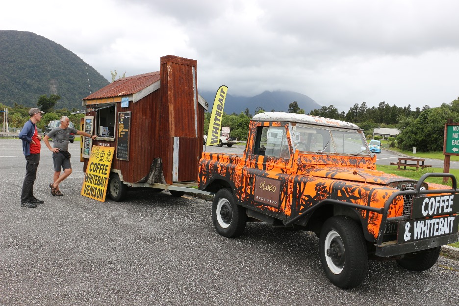 An der Westküste, in Haast, gönnten wir uns einen exklusiven Kaffee.